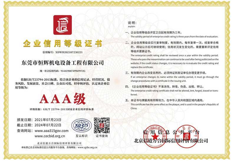 AAA級(jí)企業(yè)信用等級(jí)證書